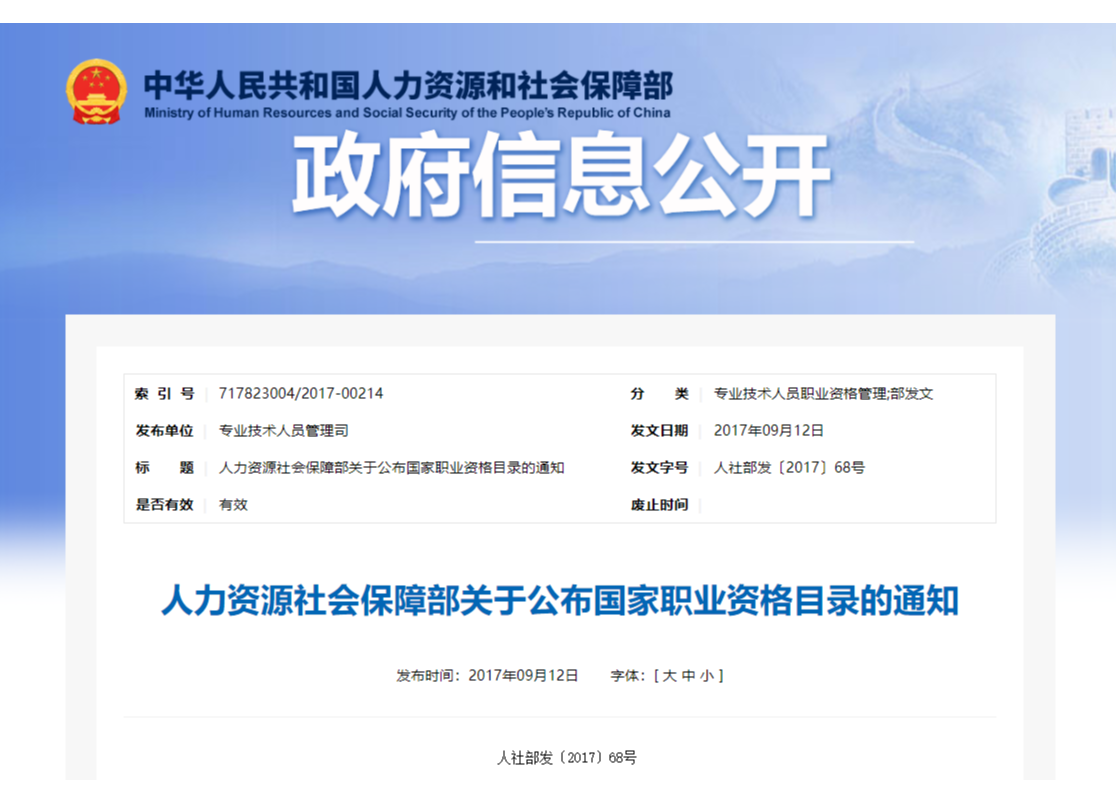 人社部发〔2017〕68号:行业协会、学会等开展能力水平评价活动的相关文件